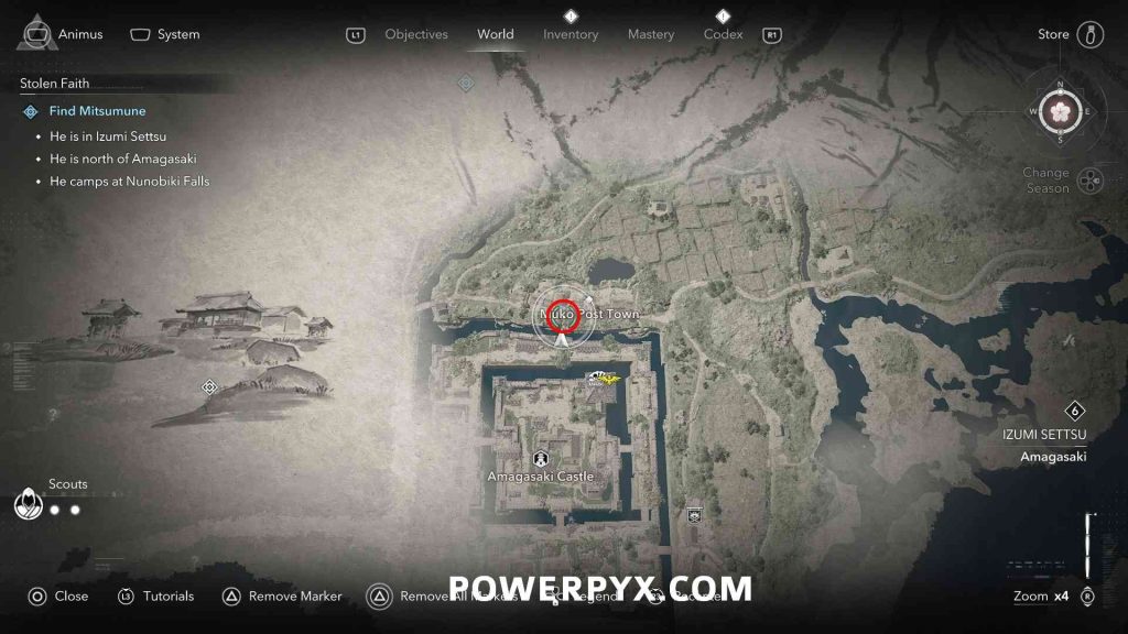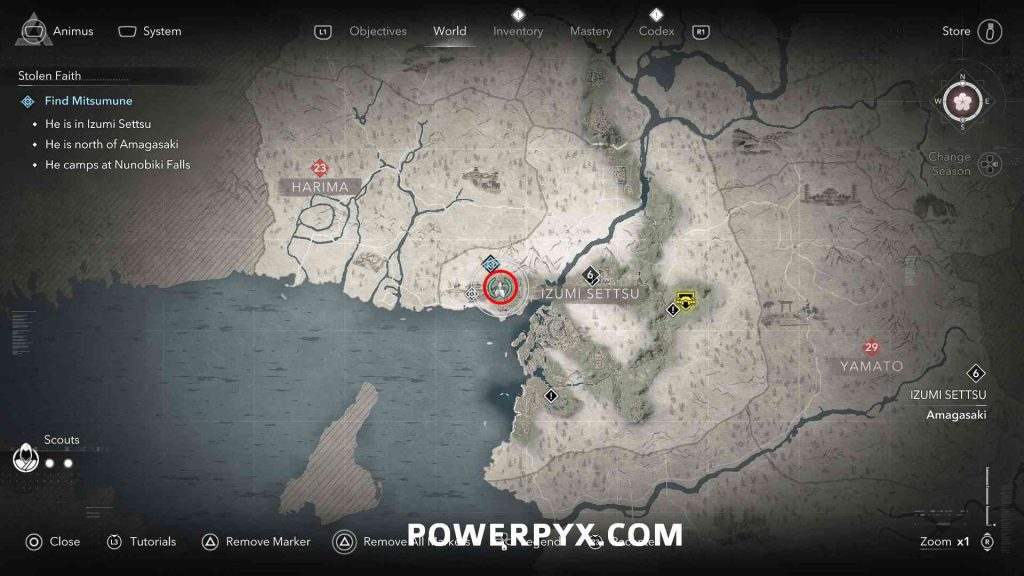 📌 Sumi-eها با آیکون خاصی هنگام نزدیک شدن روی HUD ظاهر میشوند، اما در نقشه نشانهگذاری نمیشوند. برای به دست آوردن آنها باید به حیوانات نزدیک شوید و با Naoe طراحی کنید.