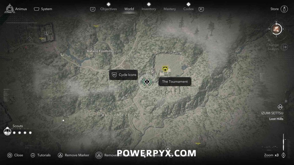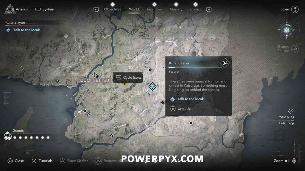 🔍 با خاموش بودن Guided Mode، باید از سرنخهایی که در گوشهی بالا-چپ صفحه نمایش داده میشود استفاده کنید تا مکان مأموریت را بهدرستی حدس بزنید. اگر Scout را به مکان درست بفرستید، آیکون آبی مأموریت ظاهر میشود و تروفی فعال میشود.