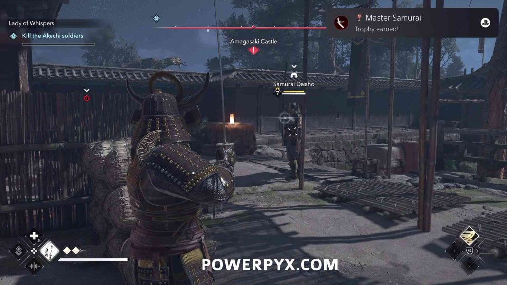 نکته مهم: برای گرفتن این تروفی، باید ماموریت فرعی “Requiem for Rokkaku” را نیز انجام دهید (در تابلوی اهداف، زیر مجموعه “People of Omi > Shotei”). با فعال کردن این ماموریت، برد جدیدی در تابلوی اهداف باز میشود که مربوط به گروه Godai Shinobi است. شکست دادن اعضای این گروه برای تروفی الزامی نیست، اما فعالسازی برد کافیست. اگر تمام ماموریتهای بخش دوم را تمام کردهاید، فقط کافیست این ماموریت را بپذیرید تا تروفی باز شود.