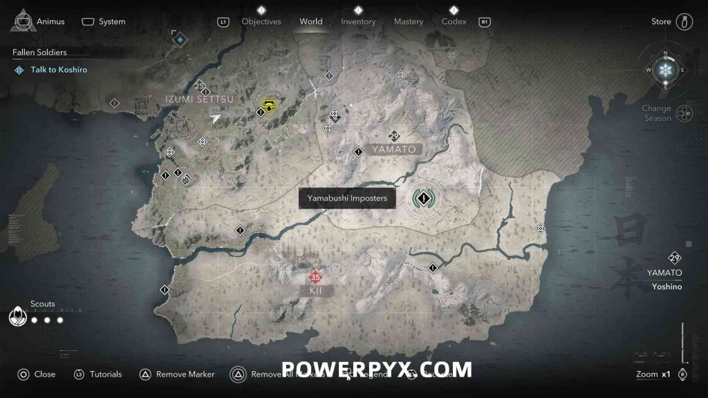 به نقشه بروید: Izumi Settsu > Lost Hills (پایگاه مخفی شما).