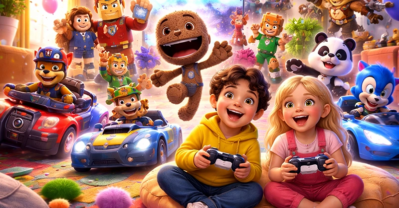 بازیهایی مثل Paw Patrol و Sackboy بهترین انتخاب هستن چون کنترل ساده و فضای کاملاً کودکانه دارن.