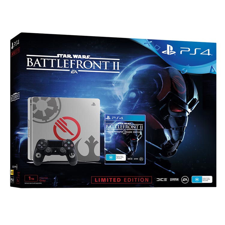 کنسول Playstation 4 Slim Star Wars Battlefront II Limited Edition 1TB یکی از نسخههای خاص و کمیاب پلی استیشن ۴ است که توسط شرکت سونی و با همکاری الکترونیک آرتز به مناسبت انتشار بازی محبوب Star Wars Battlefront II عرضه شده است. این مدل دارای طراحی ویژه با الهام از دنیای جنگ ستارگان، لوگوهای منحصر به فرد بر روی بدنه کنسول و همچنین کنترلر Dualshock 4 اختصاصی میباشد که جلوهای خاص و کلکسیونی به آن بخشیده است.